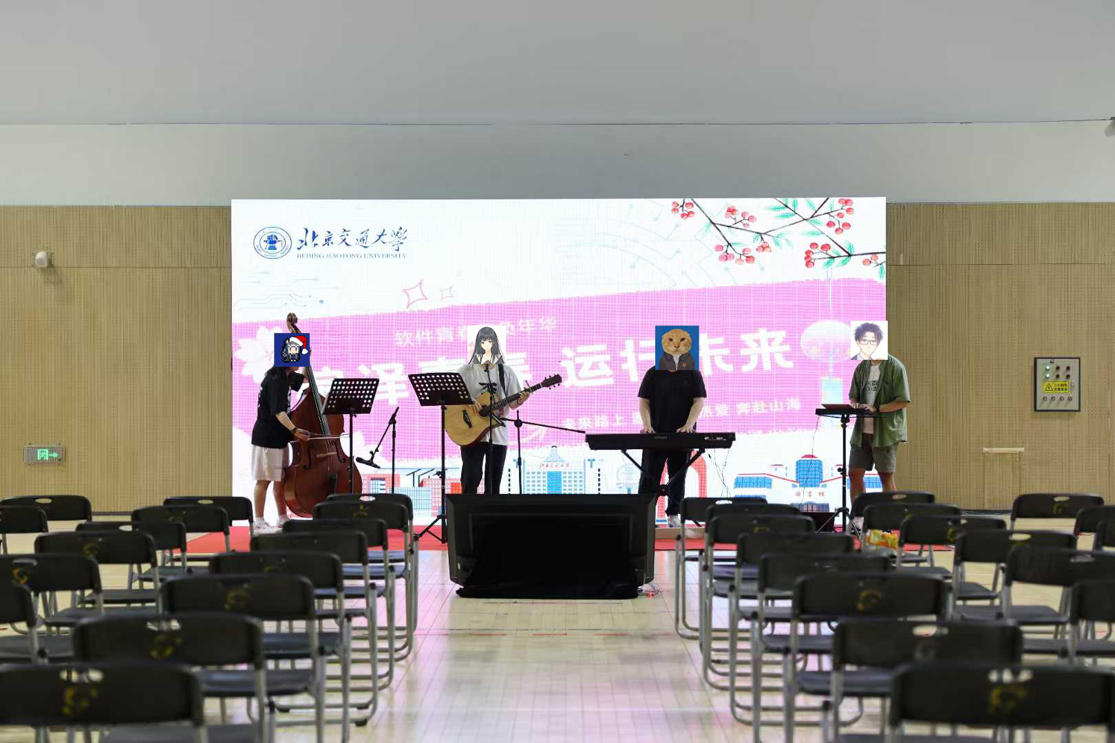 听了两首曲子,才发现演奏的其中2个人是自己队友,笑了。